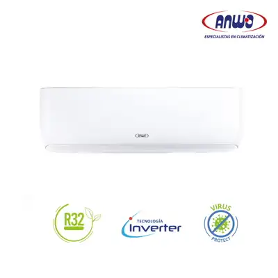 Este tipo de aire acondicionado es popular por su eficiencia energética, menor consumo eléctrico y reducción de emisiones contaminantes. Entre sus características se encuentran: alta eficiencia a carga parcial, tecnología inverter, acceso superior para cambio de filtro de aire, función de auto limpieza, wifi integrado compatible con la app anwo-home y 7 velocidad y 3 años de garantía.